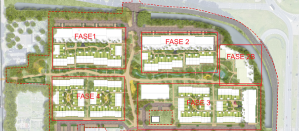 The plan will be built in four phases. Phase 1, comprising more than 130 homes, is currently being further developed into a definitive construction plan. Construction of these homes will start in 2027, once the site has been prepared for construction and the permits have been finalized.