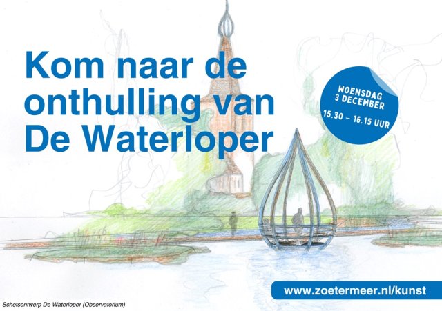 On Wednesday, December 3, the artwork De Waterloper will be festively unveiled in the Grote Dobbe . The unveiling will take place from 15:30 to 16:15 at the water at the Marseillepad in Zoetermeer.