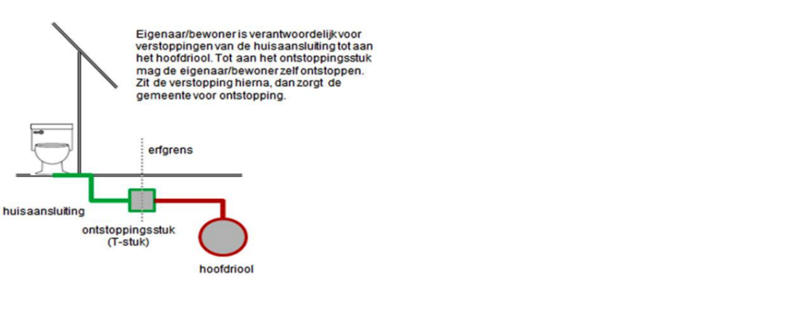 Up to the unblocker (T-piece with screw cap in the pipe), the owner must take care of unblocking himself. If the blockage is after this, the municipality will take care of the unblocking. If the blockage in the house connection is after the unblocker then the municipality will charge the cost of unblocking.